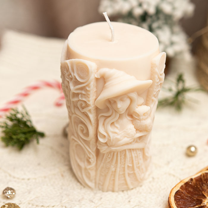 Laissez entrer la magie hivernale chez vous avec la Gardienne des Rêves, une bougie sculptée qui semble tout droit sortie d’un conte enchanté.